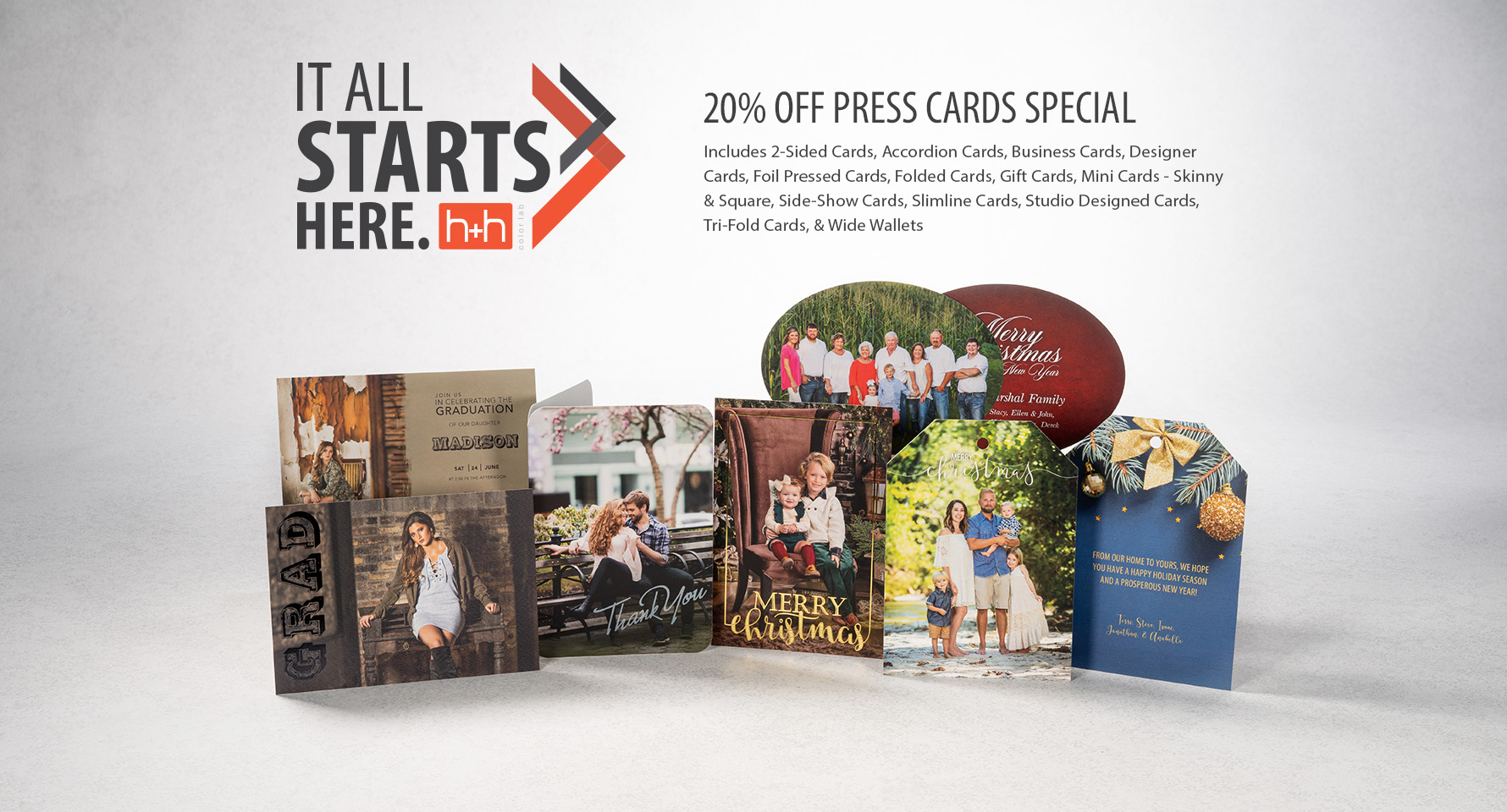 - Includes: 2-Sided Cards, Accordion Cards, Business Cards, Designer Cards, Foil Pressed Cards, Folded Cards, Gift Cards, Mini Cards – Skinny & Square, Side-Show Cards, Slimline Cards, Studio Designed Cards, Tri-Fold Cards, & Wide Wallets