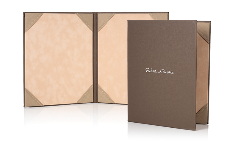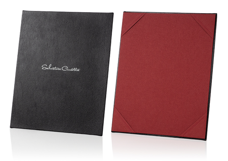 Our single panel and folio style price menus provide the perfect presentation for your 8.5×11 printed marketing sheets. Update your pricing or information as often as you like! Not just for restaurants anymore, this sales tool is both easy-to-use and has a high-end look. Add your logo to the center of the cover in white or black for a personalized touch.